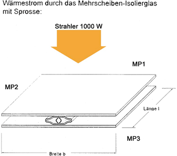 (MP 1) wurde mittels eines 1.000 Watt Strahlers eine Temperatur von 100°C gebracht. An der