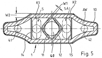 Die mittlere ovale Kammer (1) dient der Aufnahme eines Verbindungsstiftes (D 4 x 120 mm).